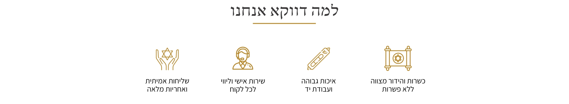 מבחר מוצרי קדושה מהודרים, באיכות גבוהה ועם אחריות מלאה.